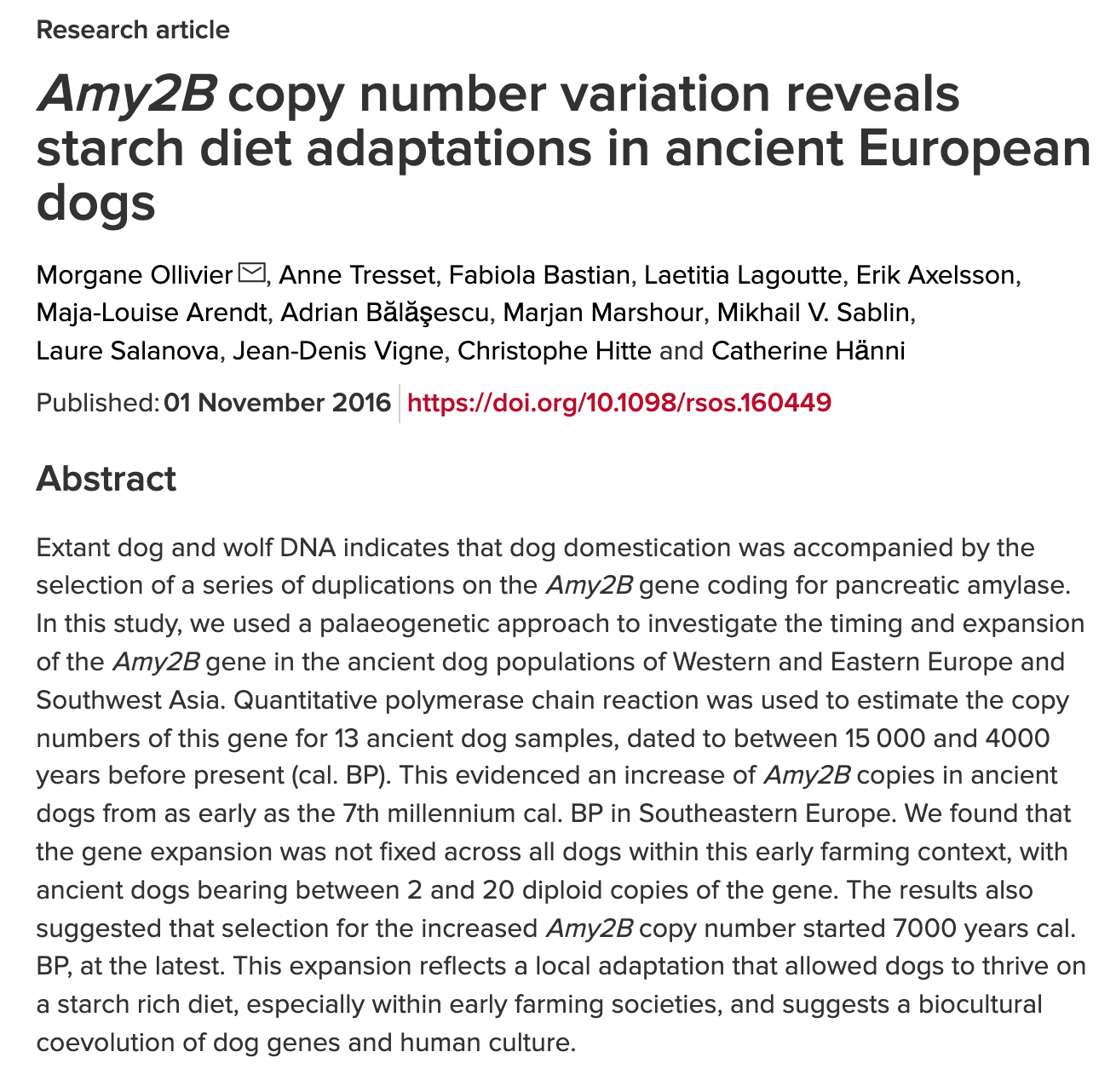 Ollivier et al. 2016 Amy2B copy number variation reveals starch diet adaptations in ancient European dogs