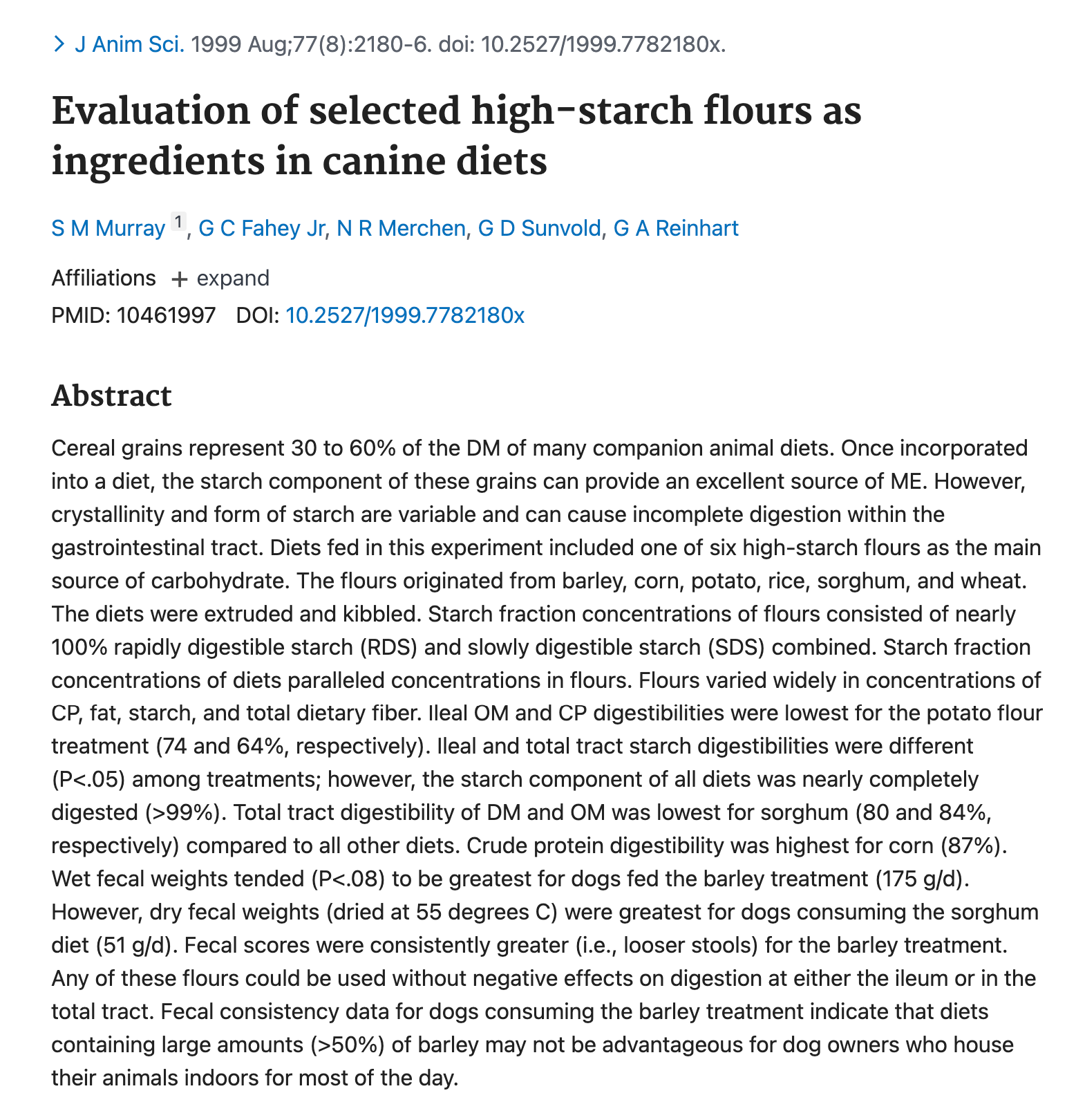 Murray et al. 1999 Evaluation of selected high-starch flours as ingredients in canine diets